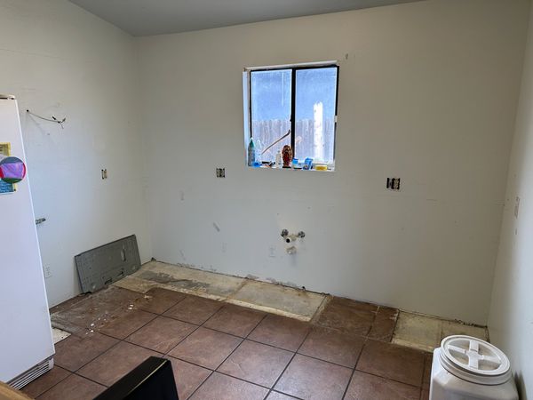 Once we pulled the existing fixtures out of the kitchen, we had to ensure that the new cabinets and bases lined up with the areas where the tile was cut to accommodate cabinets that were once there. The existing outlets, switches, and plumbing also needed attention.